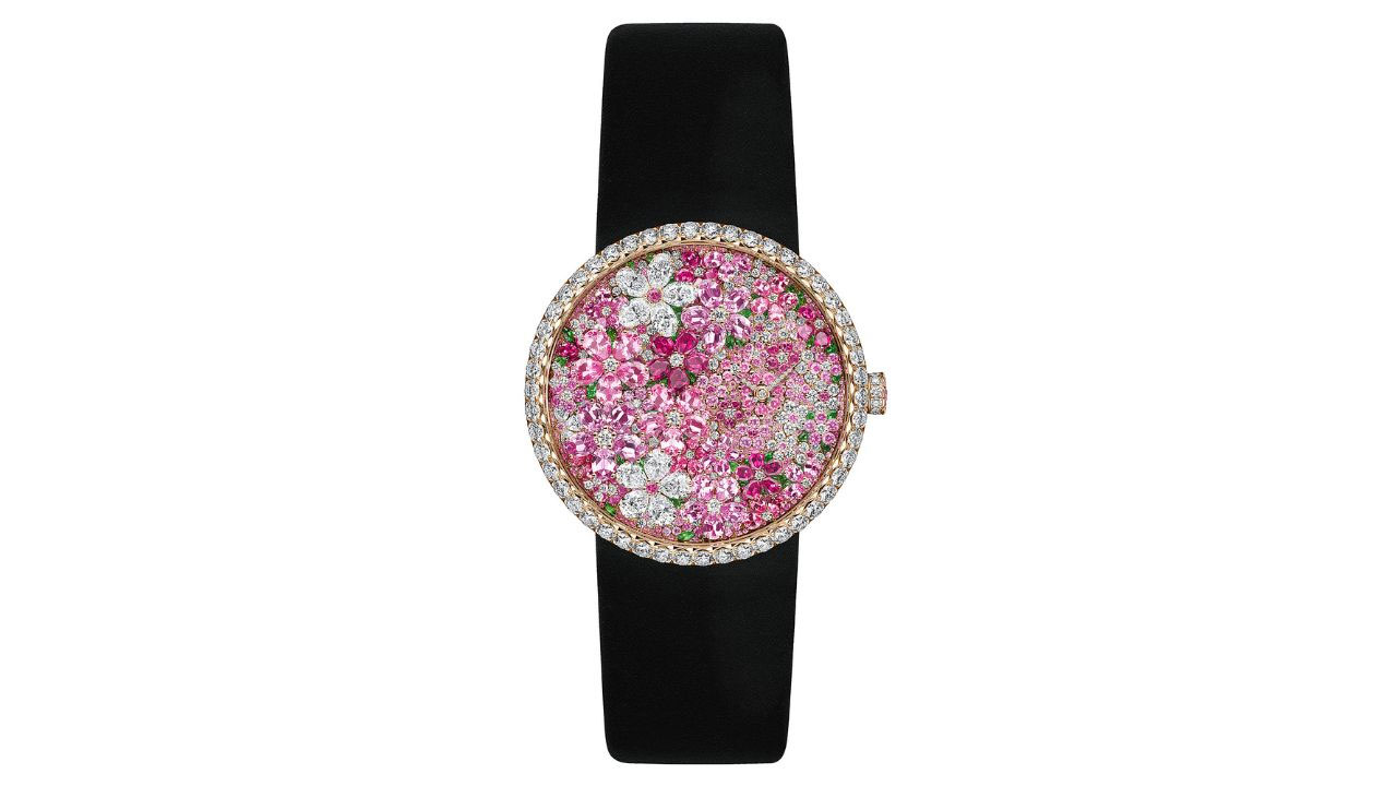 آن دسته از ما که از این باور به ظاهر راسخ برخی برندها که گویی یک ساعت زنانه، بدون حضور گل، ساعت زنانه نیست ،آزردهخاطریم، خواهیم یافت که این اثر، راهی کاملاً تازه برای نگریستن به نقشمایهٔ گل ارائه میدهد. این ترکیب با الهام از سوزندوزی، به جای آنکه تلاشی فاقد تخیل برای انتقال زنانگی باشد، فرسنگها از آن کلیشه فاصله گرفته و مهارت سنگکاری را با خلاقیتی پرشور و در عین حال ظریف درهم میآمیزد. این اثر در مجموع دارای ۱۳.۷۹ قیراط الماس، یاقوت کبود صورتی و تساورایت (گارنت سبز) است که نمایانگر صدها ساعت کار سنگکاری است. عقربههای الماسنشان نیز یک تمهید فوقالعاده هستند. به زحمت میتوان آنها را دیداما آیا واقعاً نکته همین نیست؟